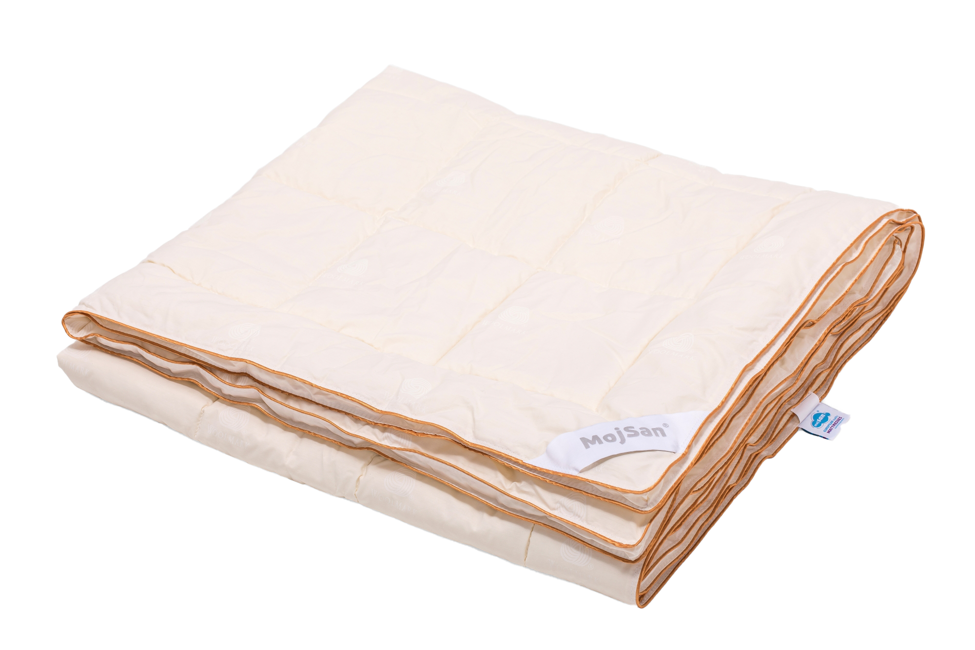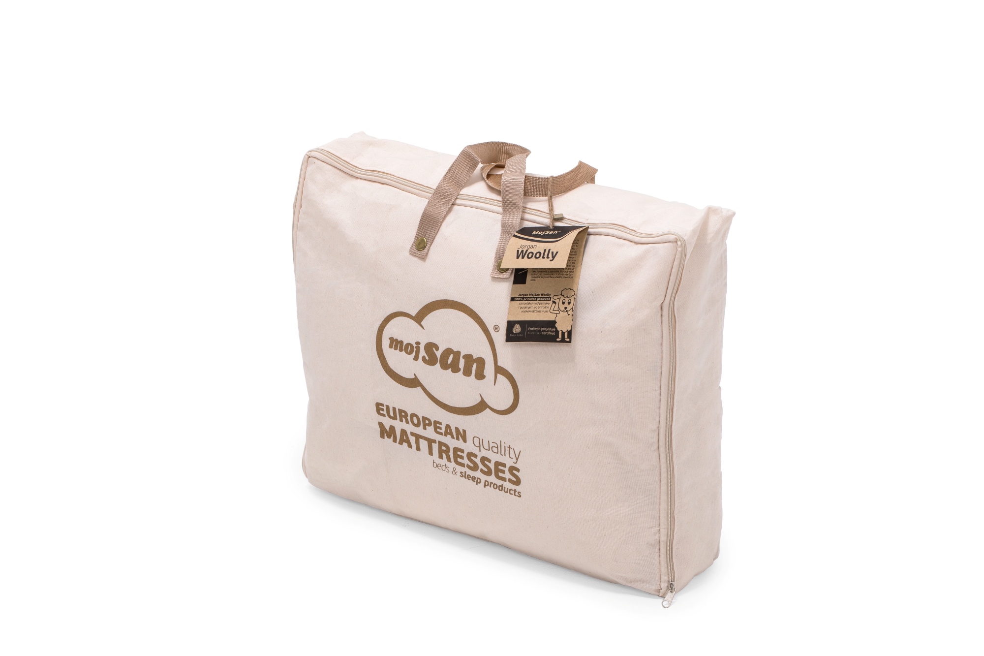 Vuna je prirodan, biorazgradljiv i obnovljiv materijal koji ne samo da pruža termoregulirajuću izolaciju u toplim ili hladnim uslovima nego takođe i reguliše vlažnost vazduha stvarajući savršene uslove za spavača. Vuna korišćena za punjenja proizvoda iz MojSan Woolly kolekcije je sertifikovana od strane WOOLMARK company kao globalnog autoriteta na polju kreiranja proizvoda sa vunom za korišćenje u sistemima za spavanje.